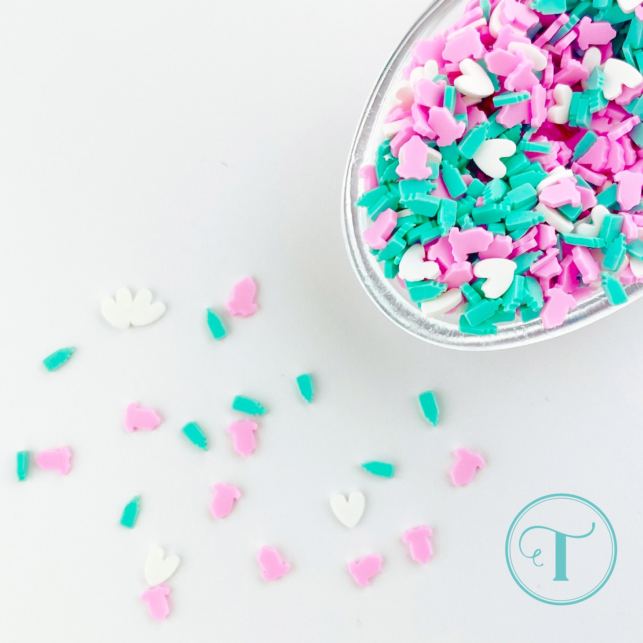 This embellishment selection contains a mix 5mm pink clay tulip shapes (approx 1 - 1.5 tsp)