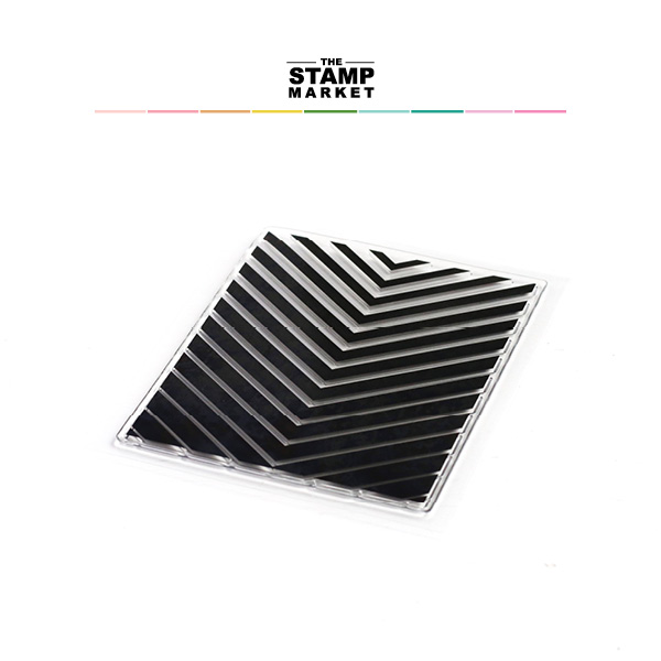 1 5X6 clear photopolymer background stamp. A little twist on a classic chevron pattern. The thick to thin lines create a beautiful gradient effect. Would look beautiful in any of our Color Crush Colors or emboss for beautiful results.