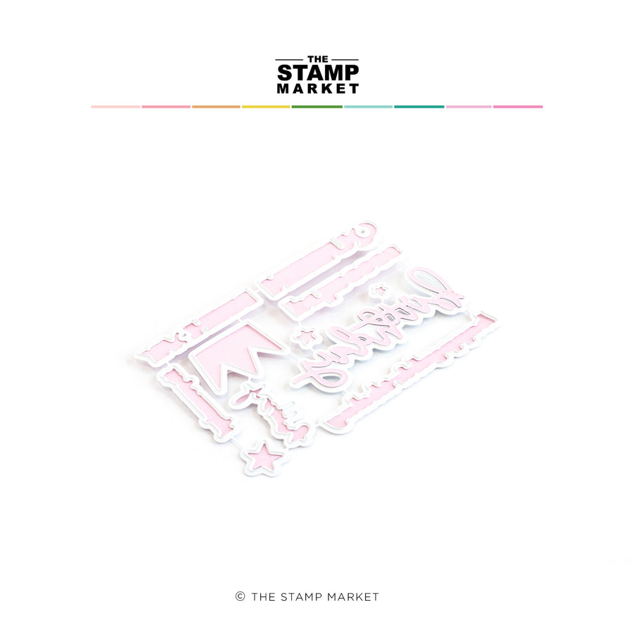Metal Edge Dies with 11 pieces. Coordinates with Birthday Queen Stamp Set