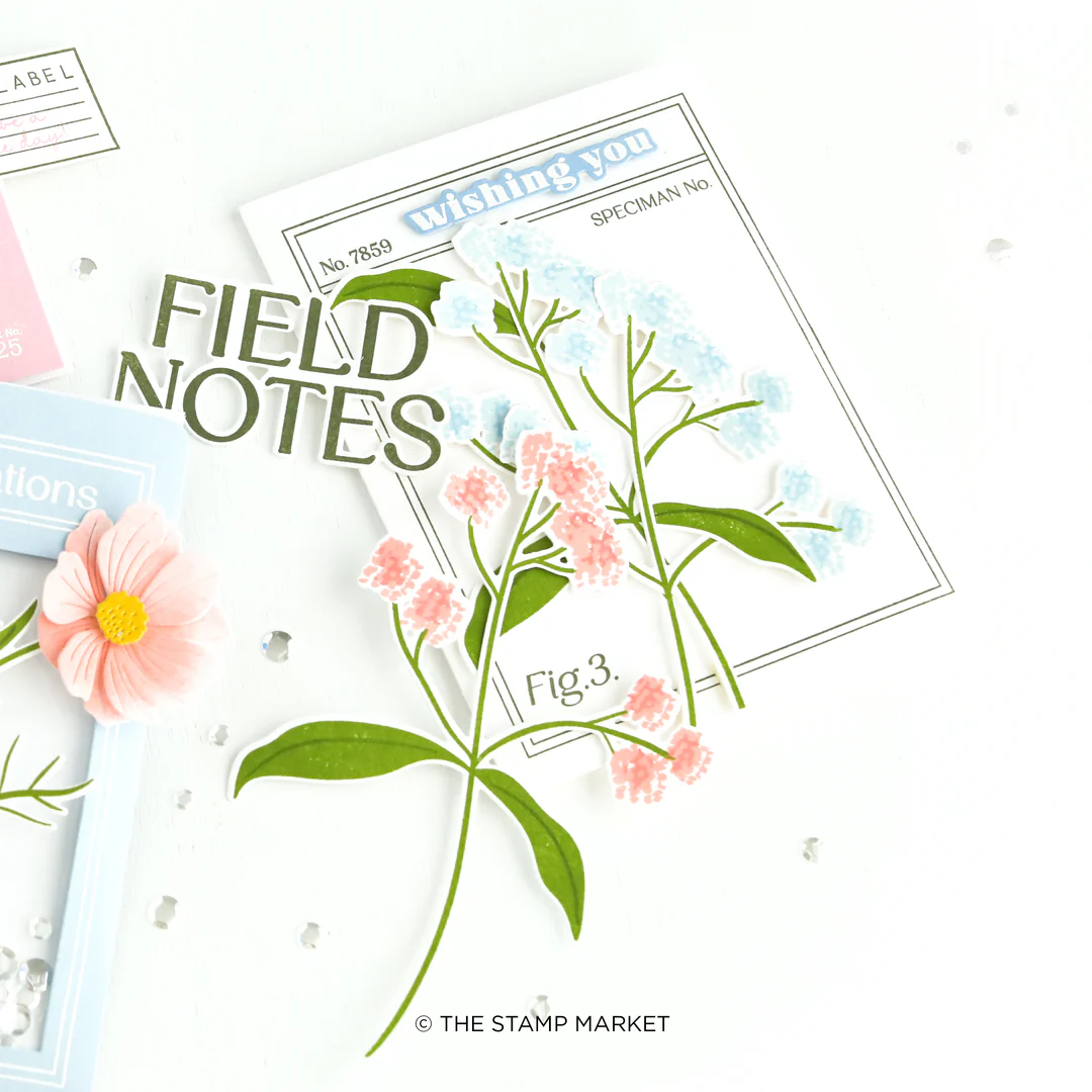 4x6 Stamp Set with 14 pieces. This charming floral stem is perfectly sized to cover the front of your A2 cards, adding a delightful touch of elegance. With simple layering, you'll achieve a beautifully lifelike effect that's sure to impress. Coordinating die available.