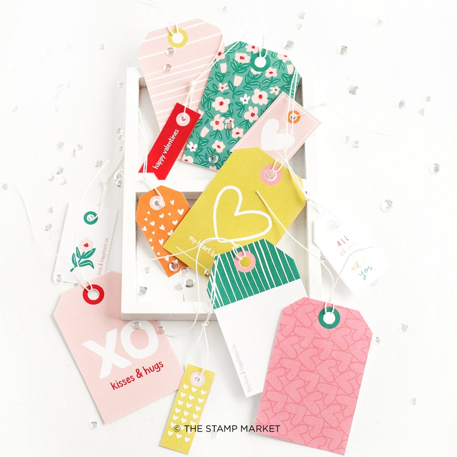 26 Sheets of 6" x 8" Patterned Paper (Single Sided). 12 Patterns (2each) Tag Sheets (2 sheets). Our Little Love patterned paper is a rainbow of colors for valentines projects with simple patterns sized perfectly for cardmakers and memory keepers alike. Pair with some of our packaging dies for the perfect little valentines.