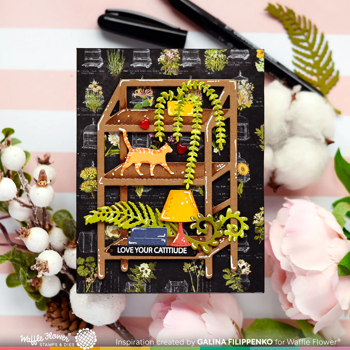Create a warm and cozy home scene effortlessly with this Three-Tiered Shelf Die set. These dies pair perfectly with the Shelf Add-on Die, Cat-a-log Combo and the Cattitude Die to bring your vision to life. You may also like: Best Friend Stamp Set, Best Friend Die.