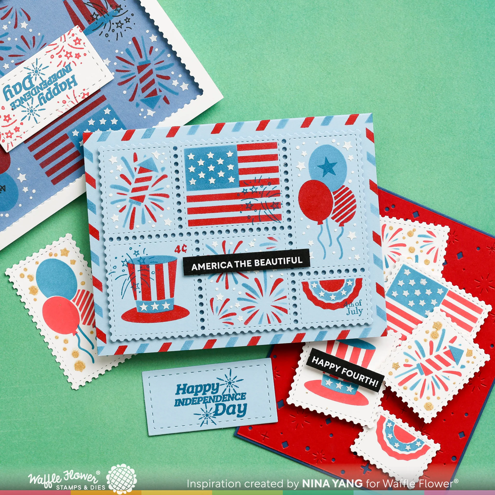 Waffle Flower - Postage Collage 4th Of July Stamp Set