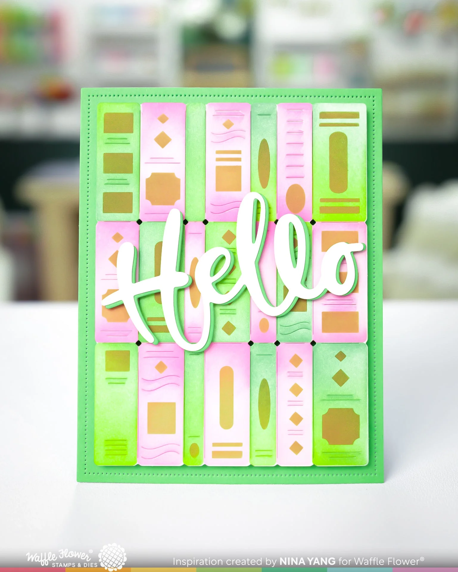 Use this three-stencil set to add color and detail to your Bookshelf Panel Die. The first two stencils feature alternating blocks to provide a base color to your books-opt for a single hue for each stencil or mix up your choices for a more colorful background. You can even use the stencils without the die to customize a cool color-blocked background panel! The third stencil includes all the details necessary to add interest to the book spines. 5 1/4" x 6 1/2" set of 3 stencils. Coordinates with: Bookshelf Panel (die)