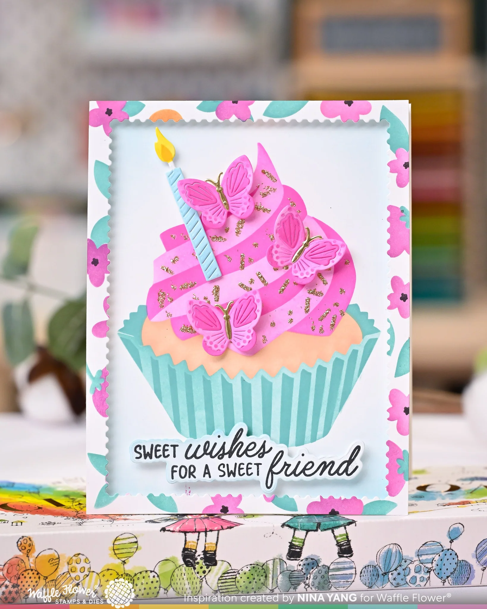 This Die-n-Stencil set includes the wings and body parts for three identical butterflies. The coordinating stencil features both a base and detail layer for the wings. To use, die-cut the butterflies first and use the negative die-cut as a guide to place them on your Grip Mat for stenciling all at once. You can also use the stencil to color the bodies or die-cut them from specialty cardstock for extra shine. These butterflies are the perfect accents for almost any card-because butterflies make everything better, even sweet cupcakes (die)! Set of 2 dies and 1 stencil. Approximate Assembled Size: 1 1/16" w x 13/16" h