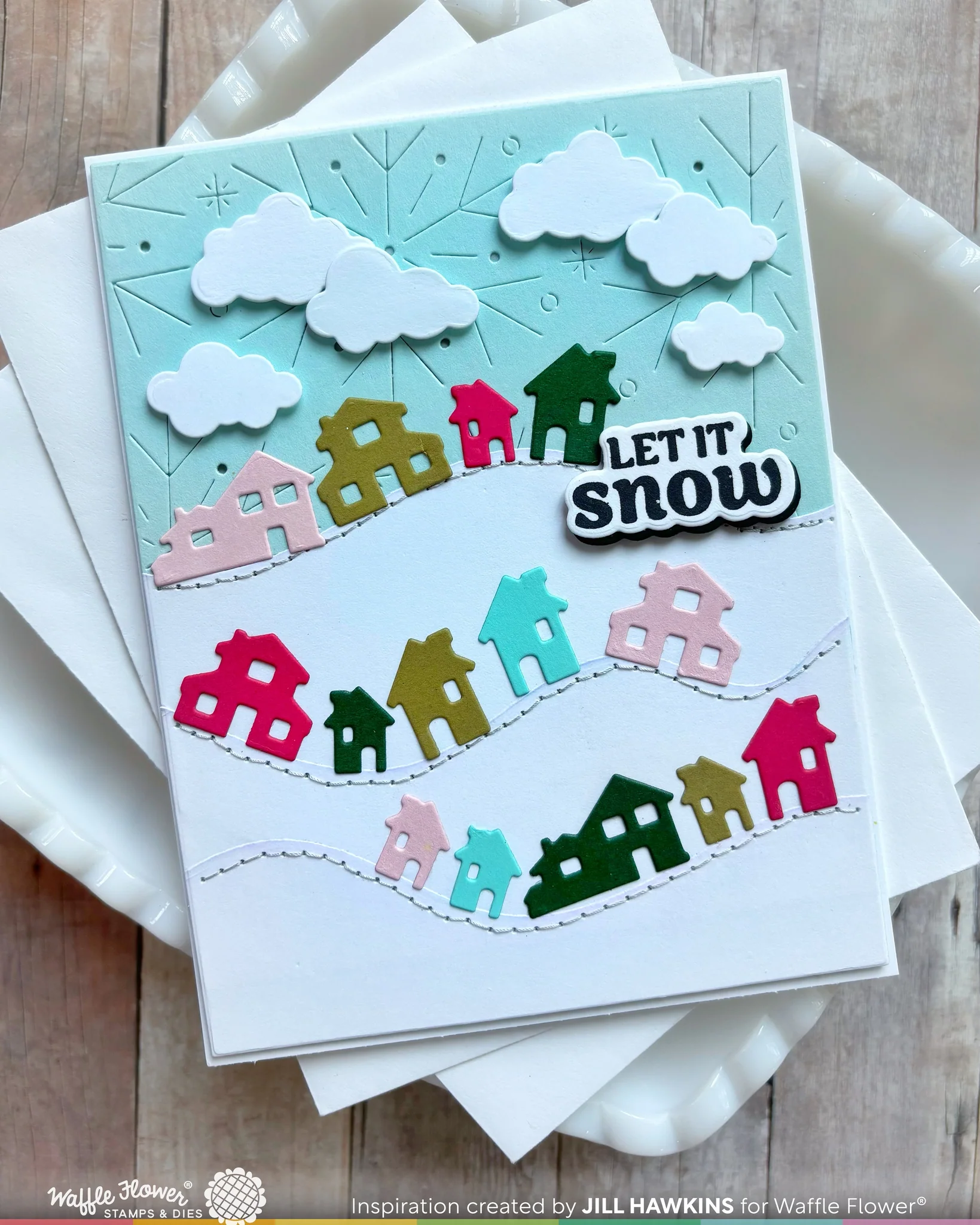 This die set includes houses, clouds, and paw prints to create trails in the snow. Use it with the Snowy Hills Die and Stencil to add extra detail and charm to your winter scenes. Set of 5 dies. Coordinates with: Snowy Hills (die), Snowy Hills (stencil)