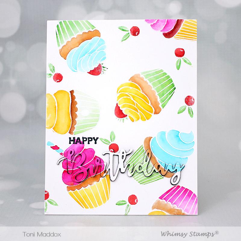 Clearly Whimsy Stamps Collection "Calories Schmalories" designed by Deb Davis - Amped2Stamp for Whimsy Stamps. Bring on the cupcakes! This fun set has 4 different cupcake images with perfectly coordinated sentiments. Decorate these yummy cupcakes with endless possibilities. High quality photopolymer clear stamps, use with an acrylic block Approximate size in inches: 4 x 6 polymer sheet.