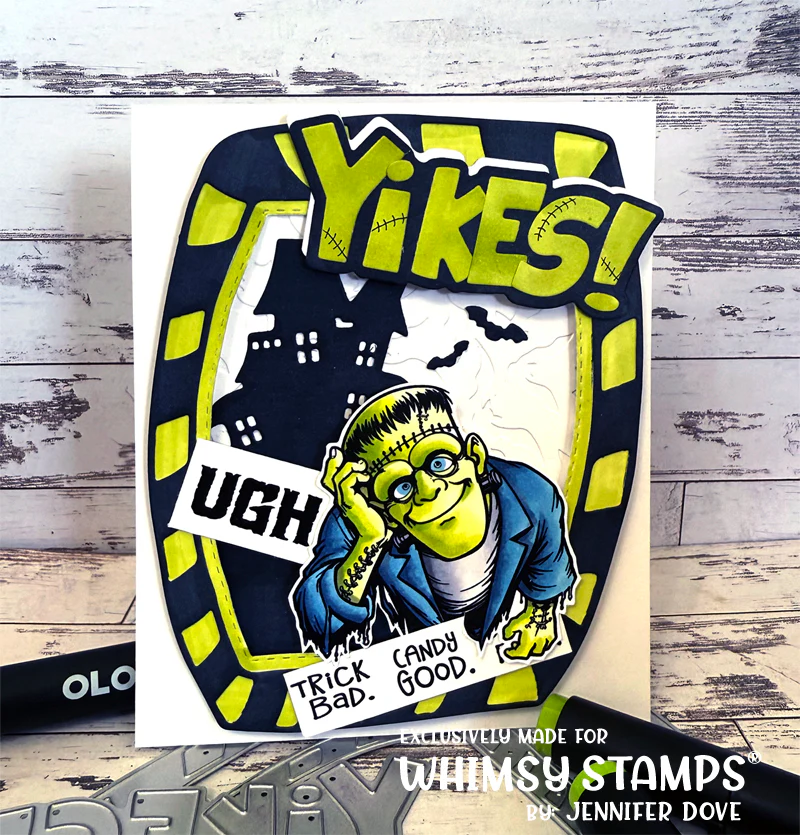 Add some humor to your Halloween (or any day) cards with our parody stamp set of Young Frankenstein. In this stamp set we have featured Dr. FrONKenstein's monster along with Igor and the infamous Abby Normal brain. Let your mad scientist out to create with this fun and nostalgic stamp set. Coordinates with our Abby Normal outline die set, sold separately. High quality photopolymer clear stamps, use with an acrylic block Approximate size in inches: 4 x 6 polymer sheet.