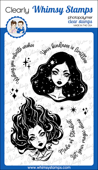 Clearly Whimsy Stamps Collection "Infinite Wishes" designed by Deb Davis - Amped2Stamp for Whimsy Stamps. Sparkle and magic! Beautiful images and coordinating sentiments. Use for birthday, friendship, and more.