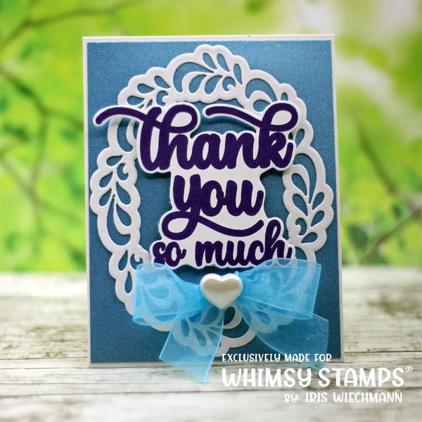 Whimsy Stamps Die Collection "Many Thanks Outline Die Set" designed by Denise Lynn and Deb Davis for Whimsy Stamps. Coordinates with our Many Thanks clear stamp set, sold separately. Set of 3 outline dies - use to cut out stamped sentiments from the Many Thanks stamp set, sold separately.