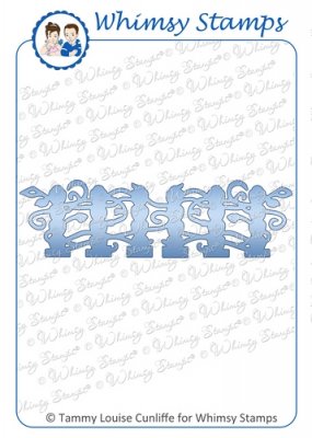 Viney Fence Border Die designed by Tammy Louise Cunliffe for Whimsy Stamps. Thin metal dies perfect for all your card making and crafting projects. Must be used with a die cutting machine, such as Cuttlebug, Big Shot, or Wizard.