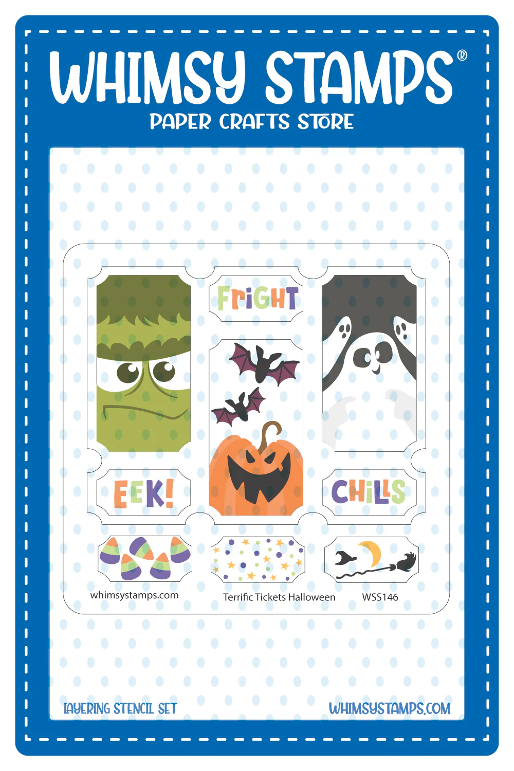 Whimsy Stamps - Terrific Tickets Halloween Layering Stencil