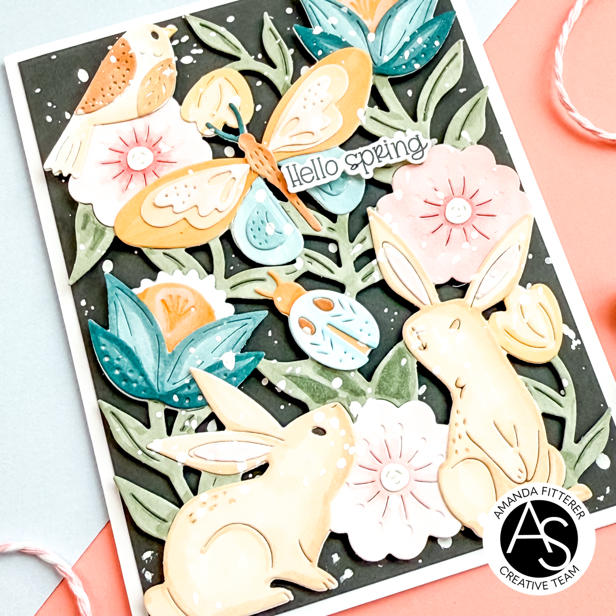 Cheerful Meadow Die Set by Alex Syberia Designs. The Cheerful Meadow Die Set includes 6 separate dies featuring the beautiful elements and critters found in the Spring Meadow Die, such as a butterfly, bird, flowers, bunnies, and a bug. Designed to coordinate with the Spring Meadow Die, this set adds extra dimension and volume to your projects, creating unique, eye-catching designs. Perfect for enhancing your spring-themed creations!
