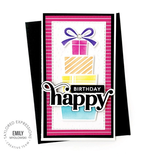 Add some extra dimension to the cards you mass produce with the Create-in-Quads - Birthday Layering Stencil (sold separately) with our Create-in-Quads Birthday Presents die. Specially designed to coordinate with the stack of presents you stencil, this die will surely get a smile from the birthday boy or girl! Individual die measures 2" x 4 1/4".