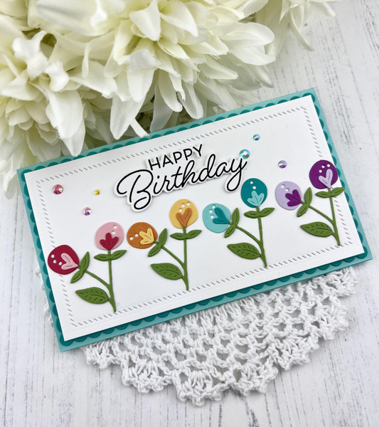 Little Bits - Buds & Blossoms is a set of 4 individual dies - designed to mimic the artwork in the Buds & Blossoms Stamp & Stencil Combo. Add the assembled flower as an embellishment on your cards featuring the Stamp & Stencil combo or find creative uses for the flower arrangement on its own! Largest flower measures approximately.5" in diameter.