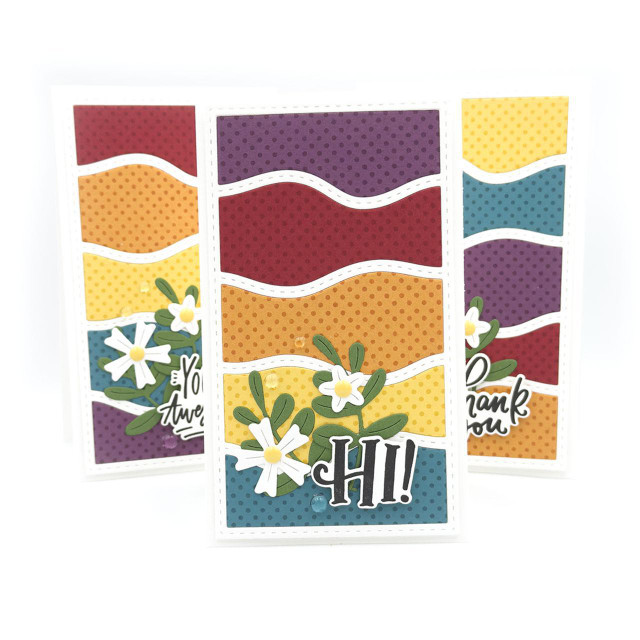 Create movement and layered dimension with the Mini Slim Wavy Stripe Cutting Plate Die! Featuring one die that cuts five wavy sections, each framed with stitched detailing, this die is perfect for building backgrounds, spotlighting sentiments, or mixing colors and textures across your Mini Slim cards. Simply choose your favorite TE Premium Cardstock and let your creativity flow! We recommend using this die with our metal shim (sold separately) to help provide even pressure over the entire cutting plate, ensuring a clear, crisp cut every time. Includes one cutting plate die measuring 3 1/4 x 5 3/4 in.
