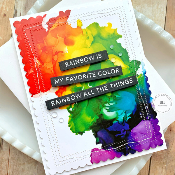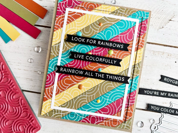 Rainbows are one of Taylor's favorite things, so Mini Strips - Rainbow seems like a natural, right? As with any of our Mini Strips stamps, this one coordinates perfectly with any of our Mini Strips dies (sold separately) to create 10 colorful sentiment strips in one simple pass. Use them individually or layer them together for more impact. Single image pre-trimmed red rubber stamp mounted on cling foam. Measures 3 3/8" square.