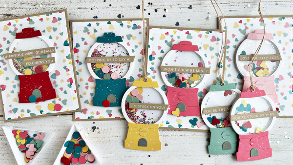 Mini Strips - I'd Chews You coordinates with any of our Mini Strip dies (sold separately) and is the perfect companion for the Gumball Machine Die (sold separately). It includes fun & silly sentiments that will blow (ha!) you away: If friends were gumballs, I'd chews you, I'm stuck on you!, You blow me away, Love you to pieces, You're the sweetest, Won't chew be mine?, You're stuck with me, Popping by to say hi, Hope your birthday's a ball. Single image pre-trimmed red rubber stamp mounted on cling foam. Measures 3 3/8" square.