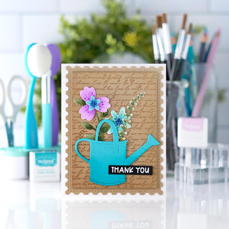 Add timeless charm to your projects with the Fineline Script 6x6 Background Stamp! This full coverage stamp features a block of intricate, cursive script text. Easily create beautiful backgrounds with the look of aged manuscripts or fancy stationary. Simply ink up with your favorite TE Premium Ink, press onto your paper, and enjoy a beautifully refined background that adds depth and sophistication to any design! Includes one single-image red rubber stamp pre-trimmed and mounted on cling foam measuring 6 x 6 in. Storage panel measures 6 3/8 x 6 3/8 in.