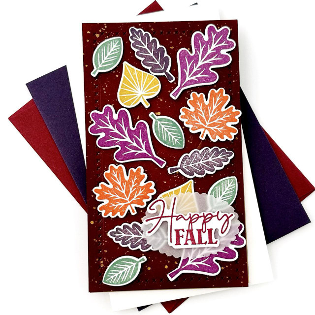 Celebrate the season of changing colors and falling leaves with the All Around Autumn Stamp Set! Simply ink with your favorite TE Premium Ink for a variety of fall leaves, acorns, berries, and sentiments. Pair with the All Around Autumn Dies (sold separately) to cut out each image for added versatility and dimension. Consider using them alongside our TE Maps - Happy Half Sheets (sold separately) to create multiple card layouts with one half sheet of cardstock! Sentiments include: Autumn greetings, Happy fall, Thankful for you. Includes 11 pre-trimmed red rubber stamps on cling foam. The largest measures 2 1/4 in. x 1 1/4 in. and the smallest measures 1/4 x 1/4 in. Storage panel measures 5 1/4 x 6 3/4 in. Coordinates with All Around Autumn Dies (sold separately).