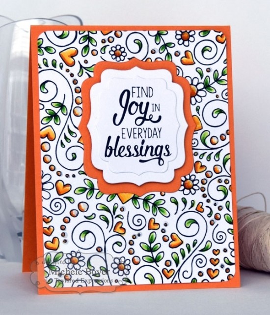 Create an easy detailed floral background with TE's Happy Flowers Background stamp. Stamp fits any A2 card.