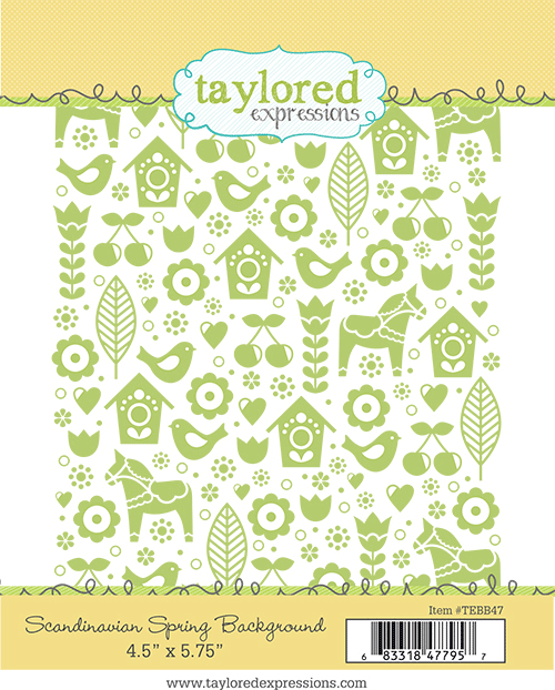 The Scandinavian Spring Background stamp is a whimsical assortment of birds, cherries, leaves, flowers, birdhouses, horses and other nordic designs, aligned in an intricate pattern that adds visual texture to any card or craft. Sized to cover an A2 card front. Single image pre-trimmed red rubber stamp mounted on cling foam. Comes on a color-printed index. Measures 4.75" x 5.75".