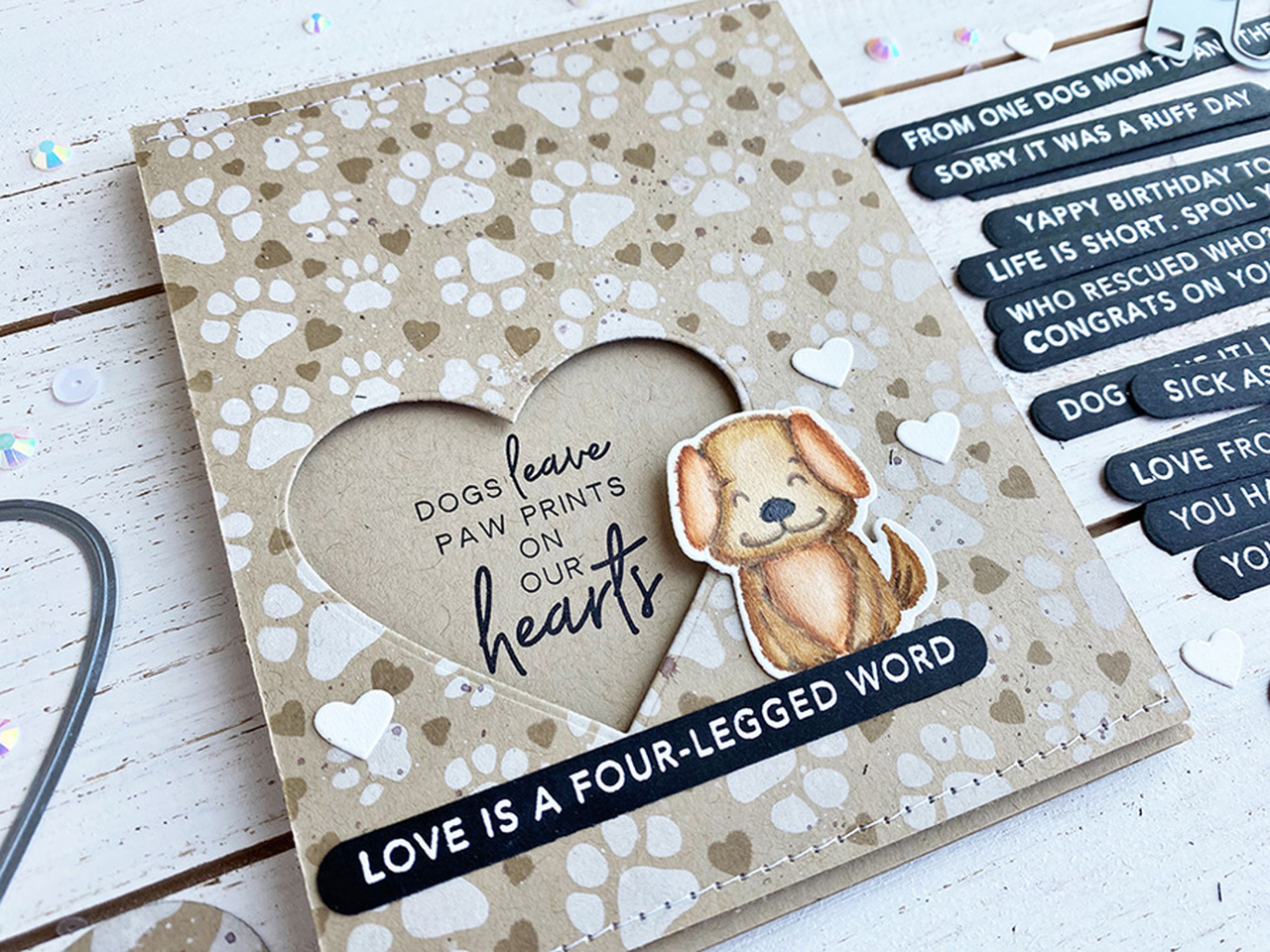 If you're a dog person (or have lots of people with fur babies in your life), Simple Strips - Woof will be your new best friend! Use it with our Simple Strips or Simple Strips - Well Rounded Dies (sold separately) to create 18 sentiment strips at once that can be used individually or grouped together. Single image pre-trimmed red rubber stamp mounted on cling foam. Measures 4 1/2" x 5 3/4". Includes alignment tabs to perfectly line up with the Simple Strips and the Simple Strips - Well-Rounded dies (sold separately).