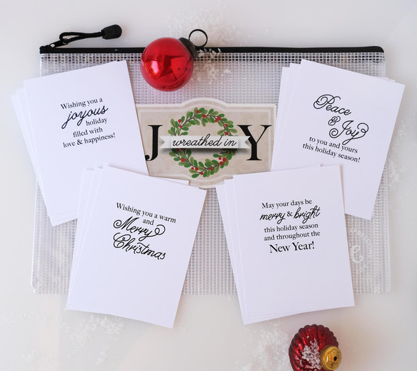 It's what inside that counts! The Insiders - Wreathed In Joy is a set of pre-printed sentiments designed to place on the inside of your cards. These panels are sized for A2 cards but can be trimmed or die cut to suit any card layout. All you need to do is sign, seal, & deliver! Sentiments included in The Insiders - Wreathed In Joy: Wishing you a joyous holiday filled with love & happiness! Wishing you a warm and Merry Christmas, Peace & Joy to you and yours this holiday season! May your days be merry & bright this holiday season and throughout the New Year! Includes (12) 4" x 5.25" pre-printed panels on 100lb Sugar Cube Cardstock (3 each of 4 sentiments).