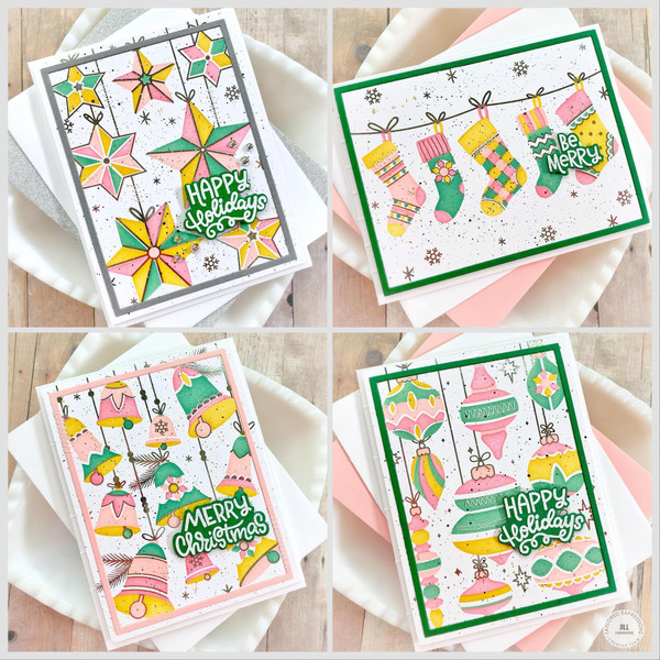 Our Foil It - Deck the Halls panels are the perfect partner for the Create-in-Quads - Deck the Halls Layering Stencil set (sold separately). These panels can be used on their own, as is, or foiled with your favorite TE Fun Foils to create all the strings and extra flair for your holiday panels! Set of 12 pre-printed panels (3 each of 4 designs) on TE Premium Cardstock. Panels measure 4" x 5.25". Please note: Our Foil It products are designed to work with a Minc or laminator. They are not compatible with the Spellbinders Glimmer Machine (or other similar hot foiling products).