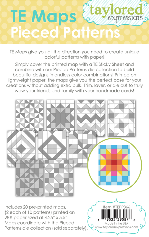 TE Maps - Pieced Patterns provide a roadmap for creating patterns with the Pieced Patterns Cardmaking Kit! Simply cover the printed map with a TE Sticky Sheet and piece the pattern together with your favorite color combinations! One set of the TE Maps - Pieced Patterns panels is included with the Pieced Patterns Cardmaking Kit, but pick up extra packs to keep the creativity going with new color combinations! Includes 20 pre-printed maps: 2 each of 10 patterns printed on 28# text weight paper sized at 4.25" x 5.5". Maps coordinate with the Pieced Patterns Die Collection (sold separately).