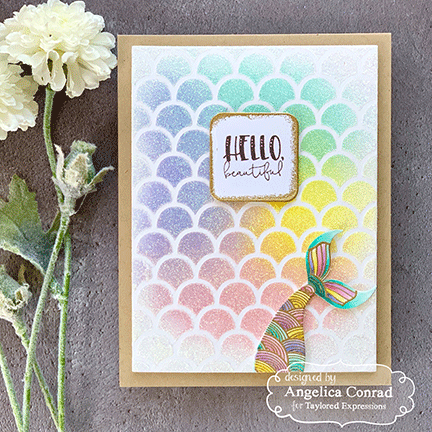 Whether you're designing fish scales, mermaid tails or intricate patterned backgrounds, the Sweet Scallop Stencil will quickly become one of your favorites! Use it to add dimension or color to a variety of surfaces, including cardstock, acetate, fabric, metal and wood. Our 6" x 6" Designer Stencils are generously sized for horizontal or vertical A2 cardmaking, and can be used over and over again with spray mist, ink pads, acrylic paint, chalk, embossing paste and more!