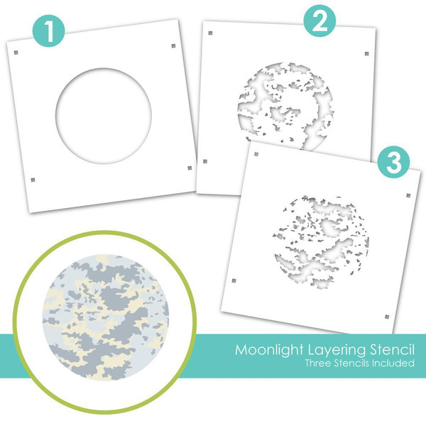 The applications for the Moonlight Layering Stencil are never ending! Use one, two, or all three stencils, depending on how much detail you want your moon to have. One layer can create a solid moon in which to use a silhouetted background. Have more creative fun with multiple layers to highlight the variegation in the moon's surface. You can even use TE Circle Stacklets (sold separately) to create custom moons! Includes 3 layering stencils measuring 6x6.