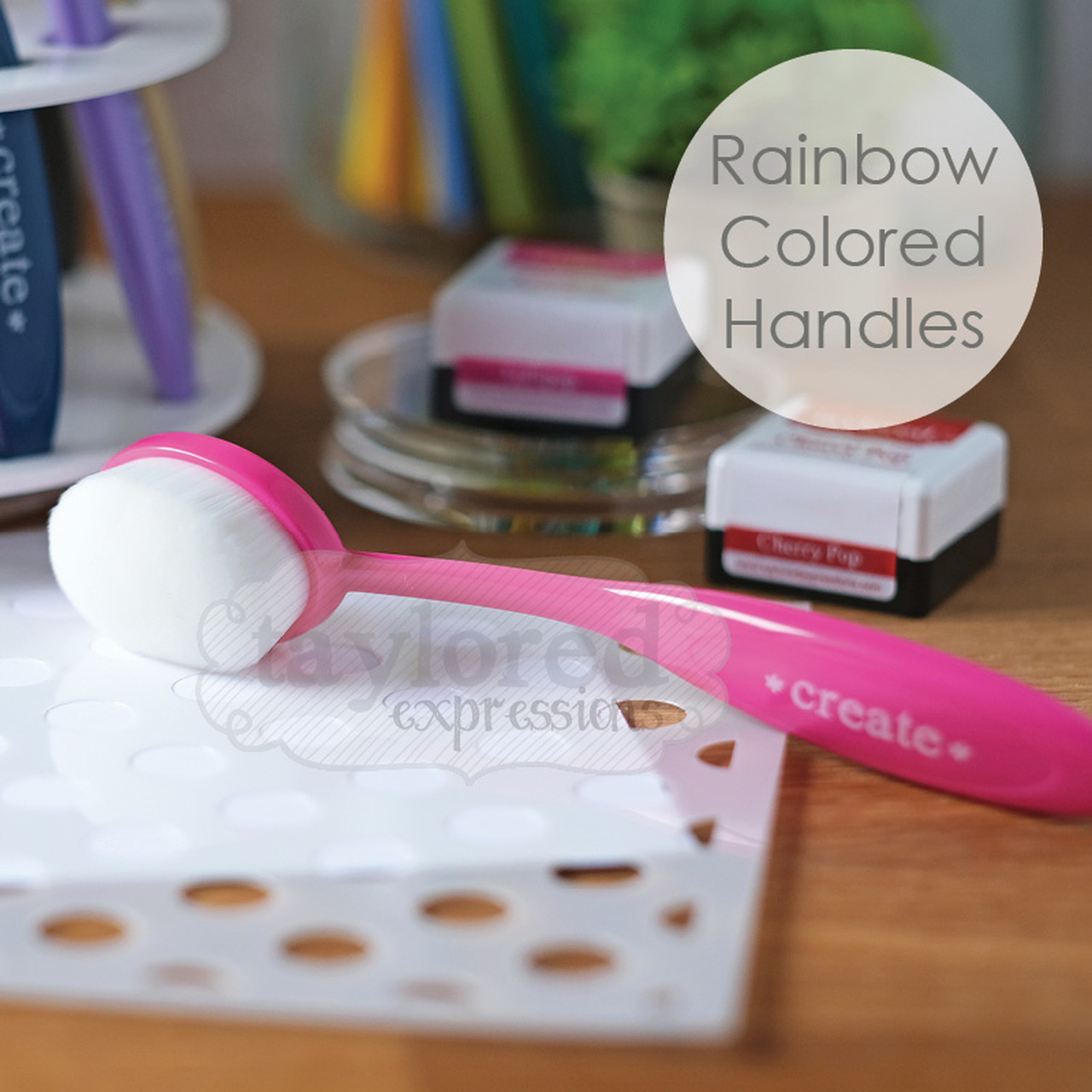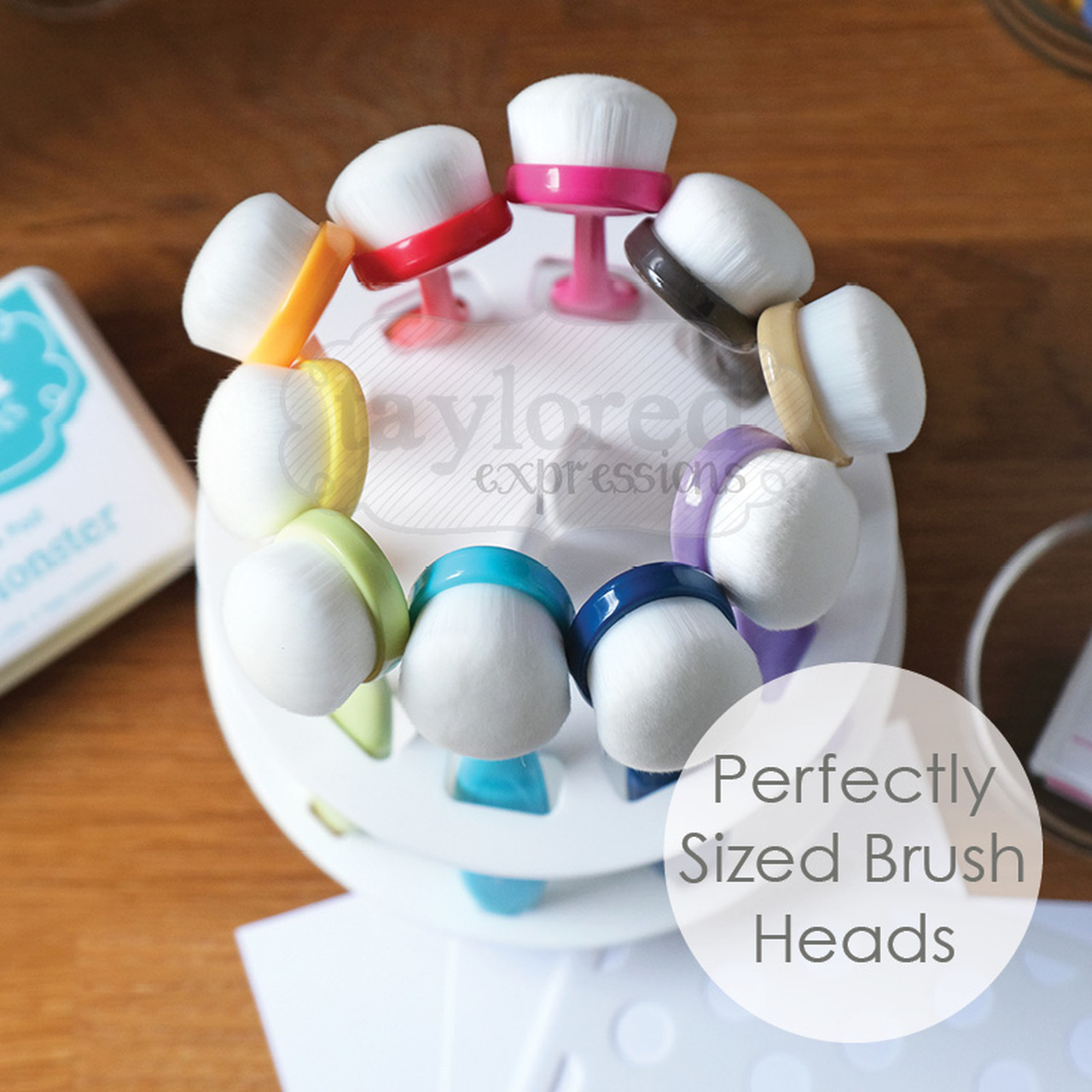 Designed, sourced, and manufactured with the crafter in mind, Taylored Expressions Blender Brushes offer unique features for superior control and exceptional blending on all of your paper-crafting projects! Fine, white bristles allow you to see the color you're blending. Ten identically-sized brush heads are the optimal size for a variety of projects. Flexible, rainbow-colored handles feel great in your hand AND look cute displayed on your craft table. Spinning Storage caddy (sold separately) is convenient for using, storing, and displaying the brushes. Use Taylored Expressions blender brushes with your favorite ink for endless possibilities! When necessary, clean the excess ink from your brushes using gentle soap and water and the Blender Brush Cleaning Tool (sold separately). Do not use Stamper's Spritz or any type of paint stripper or remover. Note: if you dedicate each brush to one color family, brushes do not need to be washed after each use. Set of 10 brushes (each measures 6" long with a 1.5" brush head).