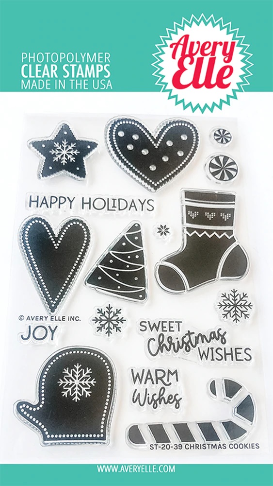 Christmas cookies are a staple during the holidays. Stamp the various holiday-themed cookie designs with the coordinating cut-out cookie dies. 16 total stamps. Stocking stamp measures: 1 1/2" x 1 7/8"; mitten stamp measures: 1 3/8" x 1 3/8"; "sweet Christmas wishes" sentiment stamp measures: 1 3/4" x 5/8". Our Exclusive clear stamps are proudly made in the USA.