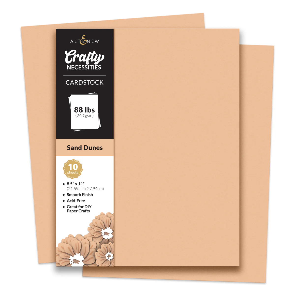 Crafty Necessities: Sand Dunes Cardstock is your go-to crafting companion to achieve beautiful and vibrant projects. With its premium quality and weight of 240 gsm/88 lbs, this cardstock ensures a high-quality finish that will bring your creative vision to life. Each pack includes 10 letter-sized sheets, providing ample crafting material for die cutting, flower making, etc. Sand Dunes is part of our Coffee Break color family. This is a soft, sandy beige that evokes the gentle warmth of morning light. Key Features: ? Size: 8.5" x 11" ? Weight: 240 gsm/88 lbs ? 10 Sheets/Set Why You Need These In Your Craft Room: ? Great for Die-Cutting ? Coordinates with Altenew Ink Colors. ? Versatile Usage: Ideal for card bases, panels, scrapbooking, home decor, and more ? Smooth Texture ? Acid-Free ? Fade-Resistant