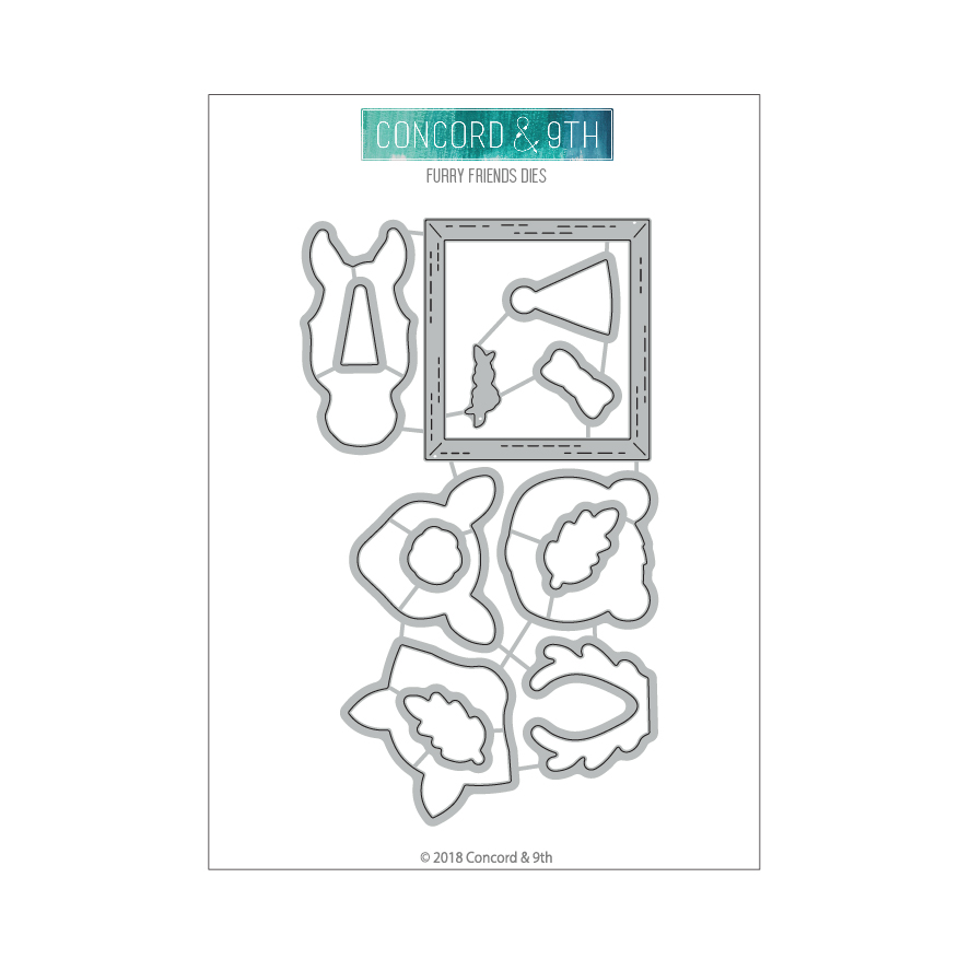 13 piece die set that coordinates with Furry Friends stamp set. The dies cut around the outside of the cute Furry Friends with a fun frame included.