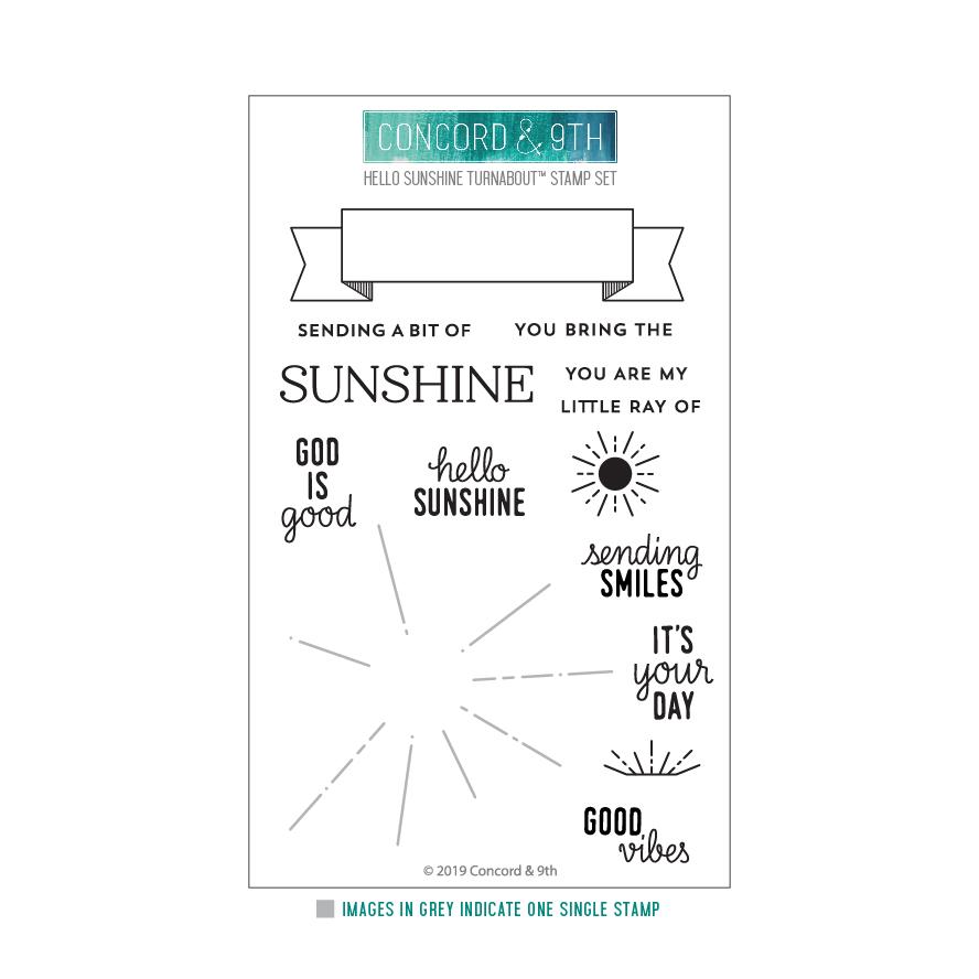 4x6 stamp set with 14 images. Coordinates with Hello Sunshine Turnabout, dies. The Turnabout, is small, and will fit in a Mini MISTI or the Original MISTI. Some sentiments fit in the banner, others fit in the die cut circle. Approximate measurements: Sunshine Turnabout, = 3" x 3", Banner = 4" x 1 1/4", Sending a bit of = 1 5/8" x 1/8".