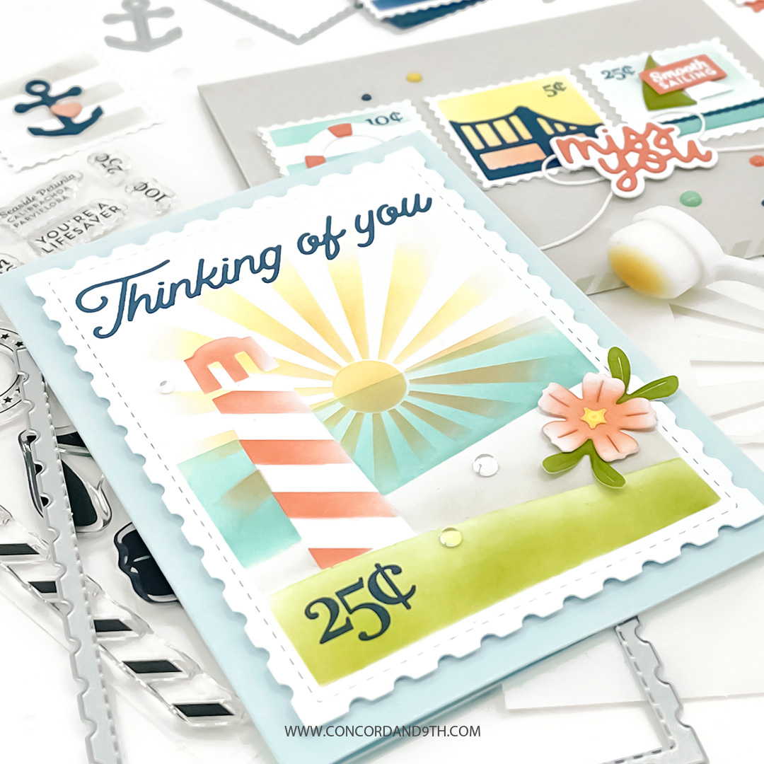 Blend together charming coastal images with the Seaside Post Stencil Pack. Use the stencils alongside the Seaside Post Dies to create different nautical scenes that will have you daydreaming about your next vacation! Stencil the images directly to your card or cut them out with the postage stamp edge dies. Complete your cards with the coordinating Seaside Post Stamp Set. Contains two 6" x 6" stencils.