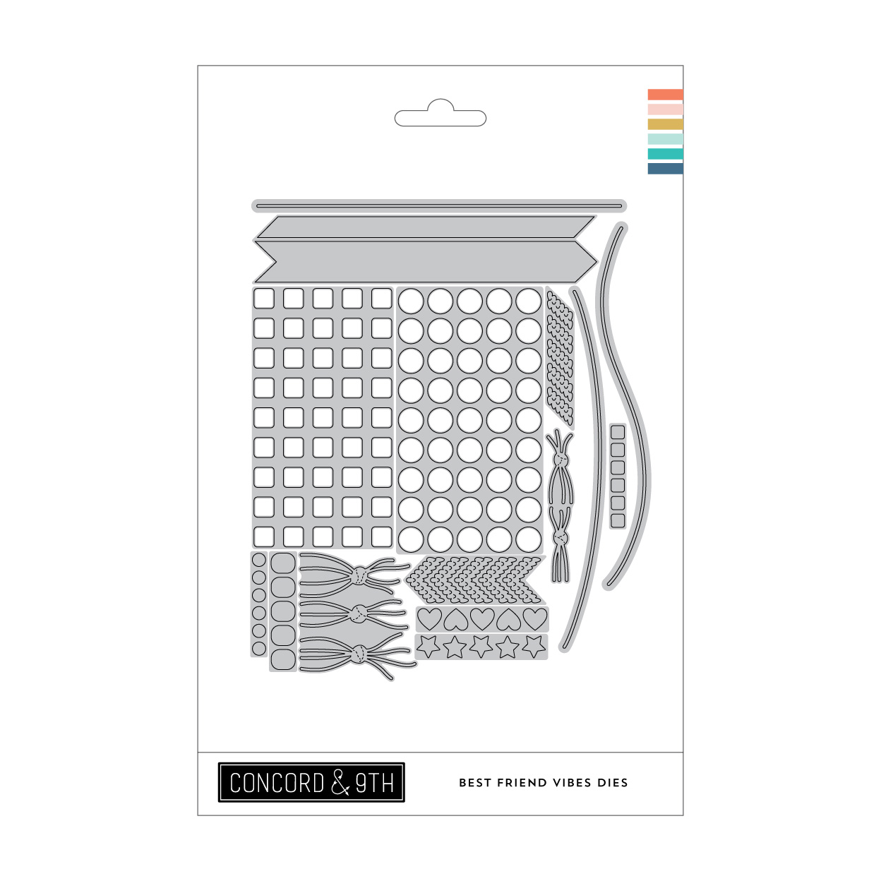 Stay connected to your best buds with the Best Friend Vibes Dies! This new set creates two types of friendship bracelets, providing hours of fun for crafters of any age! Piece together beaded bracelets with names, phrases and other messages, tailored to fit the occasion and recipient, or make something with a more intricate, woven design in all kinds of colors. Coordinates with the Best Friend Vibes dies. This set contains 15 dies.
