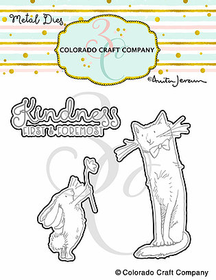 Above all spread kindness with our Kindness First Dies featuring the illustrations of Anita Jeram for Colorado Craft Company! The package includes three thin metal dies that are compatible with most die cutting machines and coordinate with our Kindness First stamp set (sold separately). Dies include a cat fishing off the coast of an island and a cat relaxing in a hammock hanging between two trees. a bunny holding a flower, a cat in a bowtie and the sentiment: "Kindness First & Foremost". Approximate Dimensions: Largest: 2.8" x 1.5", Smallest: 2" x 1.25".