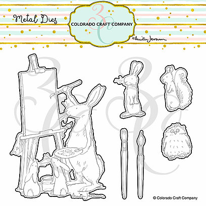 Get creative with our Art Is Dies featuring the illustrations of Anita Jeram for Colorado Craft Company! The package includes six thin metal dies that are compatible with most die cutting machines and coordinate with our Art Is stamp set (sold separately). Dies include a bunny painting a canvas, a squirrel, a small bunny, an owl, and two paintbrushes. Approximate Dimensions: Largest: 4.25" x 2.75", Smallest: 1" x 0.8".