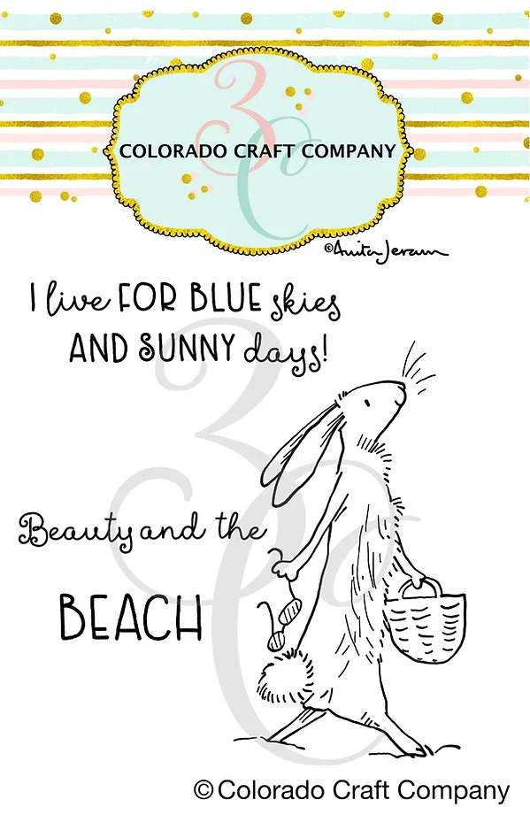 Picture yourself taking a leisurely beach stroll with the Beach Beauty Clear Photopolymer Stamp Set featuring the illustrations of Anita Jeram for Colorado Craft Company. The set includes clear photopolymer stamps with a bunny holding a basket and sunglasses walking on sand. This package includes the Beach Beauty stamp set measuring 2 x 3 inches. The stamps can be used with the coordinating Beach Beauty die set sold separately (AJ859-D). It includes four stamps: one image and three sentiments. Sentiments included in the set: Beauty and the, Beach and I live for blue skies and sunny days! Approximate Dimensions: Largest: 2.3." x 1.3", Smallest: 0.8" x 0.3"