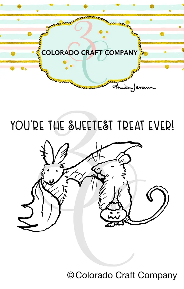 These little buddies are celebrating Halloween with the Halloween Friends Clear Photopolymer Stamp Set featuring the illustrations of Anita Jeram for Colorado Craft Company. The set includes clear photopolymer stamps with a bat and a rat holding a candy bucket. This package includes the Halloween Friends stamp set measuring 2 x 3 inches. The stamps can be used with the coordinating Halloween. Friends die set sold separately (AJ895-D). It includestwo stamps: one image and one sentiment. Sentiments included in the set: You're the sweetest, treat ever! Approximate Dimensions: Largest: 2.4" x 1.43" Smallest: 2.5" x 0.2"