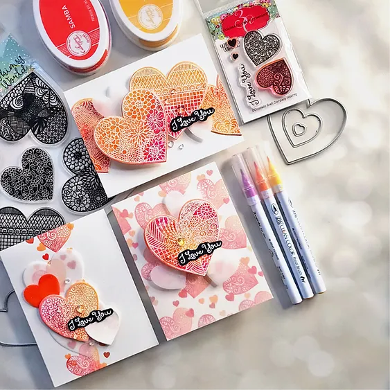 All you need is love with the Hearts Mini Clear Photopolymer Stamp Set from the Whimsy World Collection by Colorado Craft Company. The set includes clear photopolymer stamps with two decorative hearts and two small hearts. The stamps can be used with the coordinating Heart mini die set sold separately (WW771-D). This stamp set measures 2 x 3 inches. It includes 5 stamps: 4 images and 1 sentiment: "I love you." Approximate Dimensions: Largest: 1.4" x 1.25", Smallest: 0.25" x 0.25"