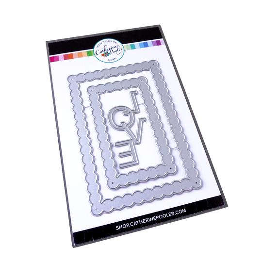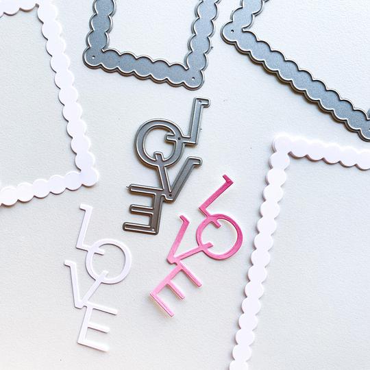Create Notecard sized greetings for Valentines and beyond with the Notecard Bubble Frames Dies. This set of two bubble frame dies will create adorable layers on your cards. Formatted at notecard size (3.5" x 5" CP Notecard or 4 Bar sized card base.), these frames can also be used on slimline and full sized A2 cards. The stacked LOVE word die is also snuggled in making this set sweet for love themed cards and projects. Illustrated by Lisa Kirkbride
