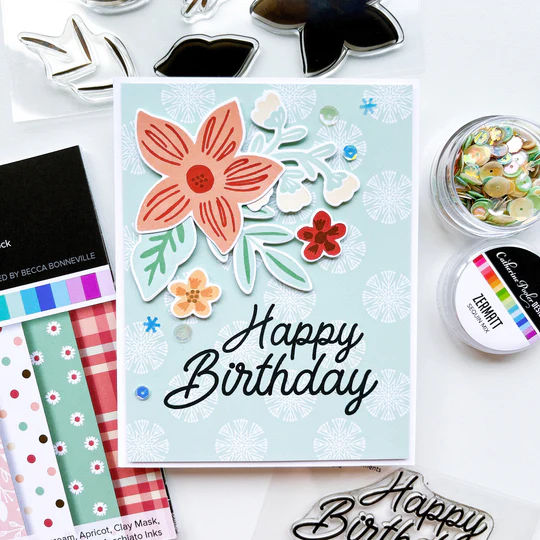 Meet our Inside Out Birthday Sentiments Stamp Set! This set was designed with thoughtful sentiments to stamp inside of your card creations. Paired with a large "happy birthday" stamp tell someone "wishing you a special day and a year full of love"! This sentiment set features a modern pairing of script and block fonts and are perfect for inside and out! Sentiments Include: Happy Birthday, You deserve the best of everything because you give the best to everyone, Wishing you a special day and a year full of love, I hope your day is full of surprises and all the delights you deserve, Here's to celebrating the birth of one of my favorite people. Designed by Becca Bonneville