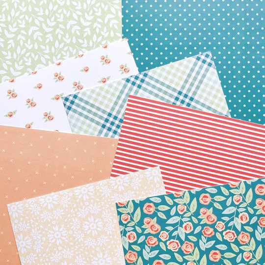 If you are looking for a modern and classy pop to our Valentine or other card or project, the Roses & Lace Patterned Paper will fit the bill! This pack features a soft Spa color combo of Polished, Apricot, Matcha, Wintergreen, Skylight and Buttercream. The pack focuses on floral prints, lace accents and simple patterns for perfect mixing and matching. Don't forget to grab the Venice sequins for a pop of sparkle to coordinate with your paper. You'll get three (3) sheets of each of the eight (8) different designs. Illustrated by Becca Bonneville