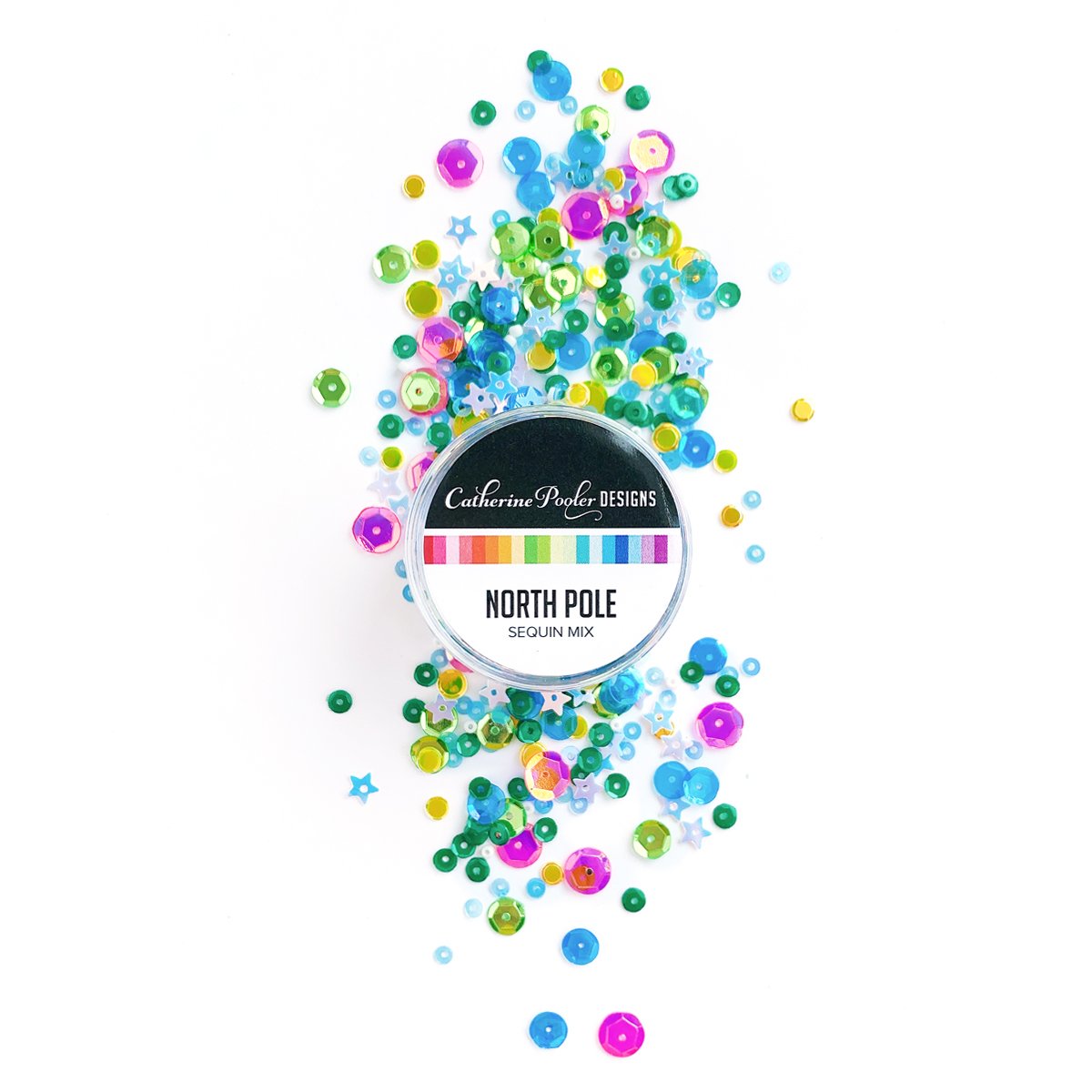 If you've always wanted to visit the North Pole, you may not be as far as you think...North Pole, Alaska is the namesake of this festive holiday sequin blend. Created to coordinate with out Holiday Whimsy Patterned Paper, this mix has a shiny blend of iridescent blues, pinks and green with a pop of bright yellow. The little white iridescent stars make this a playful mix that reminds us of Santa's workshop. Approximately 1 Tablespoon mixture packaged in a clear screw top round container.