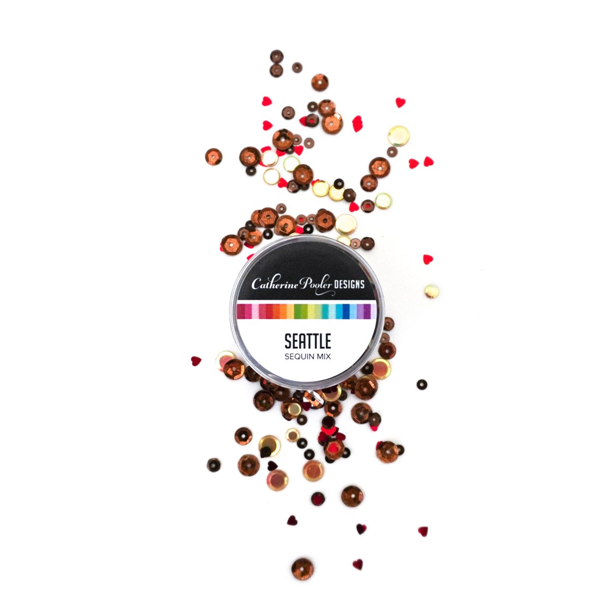 Home of the popular coffee cafe chain, Seattle, Washington is a perfect spot for sipping a hot cup of java on a chilly, rainy Pacific Northwest day. In celebration of the bean, the Seattle Sequin Mix is full of beautiful dark roasted brown and latte colored sequins with pops of metallic and hologram shine. This mix is topped off with little red hearts to show our collective love for all things coffee. This mix pairs well with the Hipster Patterned Paper and was designed small for mini shakers made with the Life Love Latte Dies. Approximately 1 Tablespoon mixture packaged in a clear screw top round container.