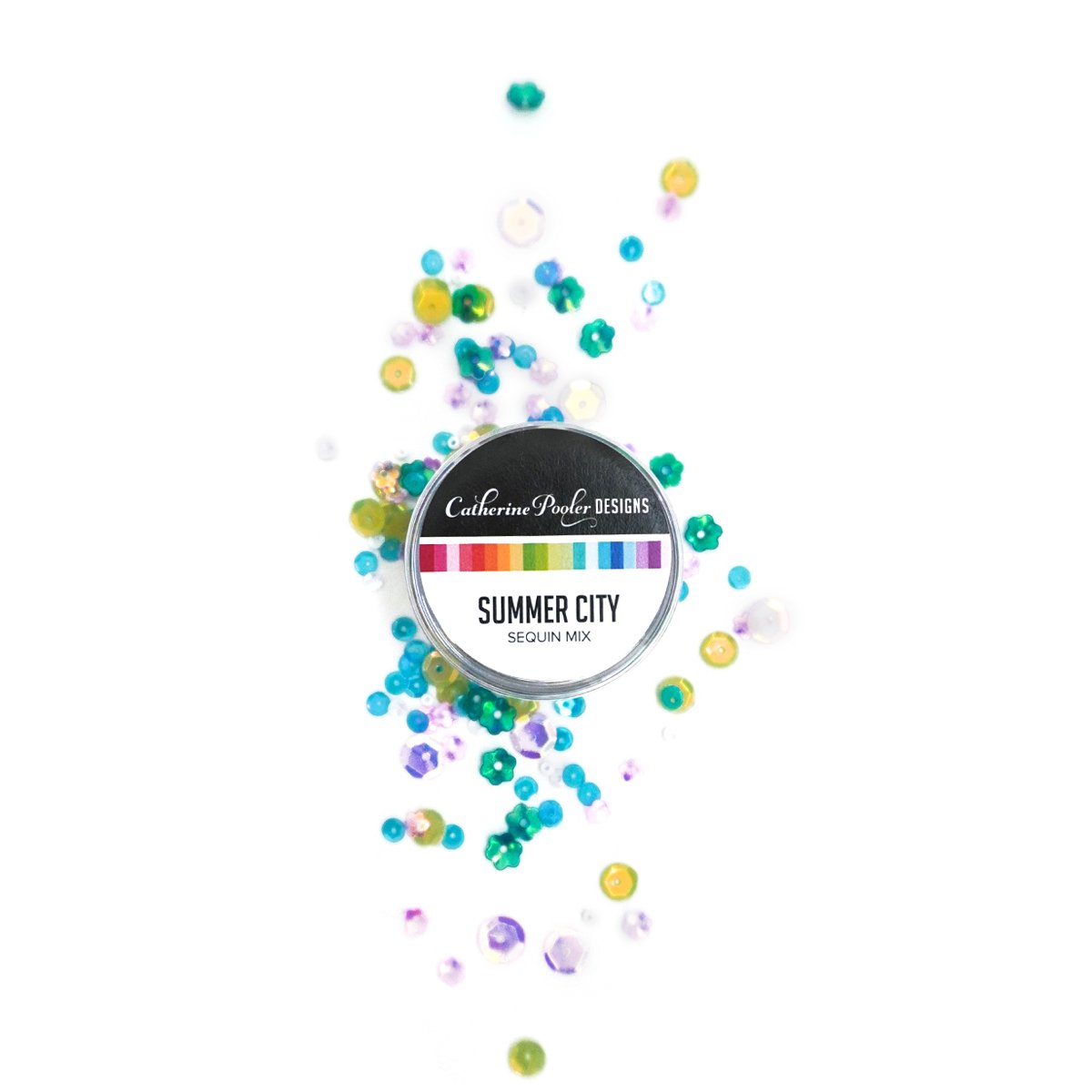 Straight from the Maryland shores of the Chesapeake Bay come the Summer City Sequin Mix! This bright mix of pink, green and teal sequins is full of little flowers and loads of seaside sparkle! Designed to coordinate with the Summer Pick-n-Mix paper, this mix will have you dreaming of a picnic in a field of flowers and dipping your toes in the sea! Approximately 1 Tablespoon mixture of shiney, textured sequins in pinks, greens, and teals. Packaged in a clear screw top round container.